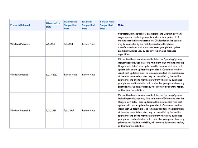The firm, like its existing Windows Phone 8 OS, would provide updates for 36 months (3 years) for devices running Windows Phone 8.1 from the lifecycle start date, which on the company's support page has been listed as June 24. The mainstream support end date will be July 11, 2017.